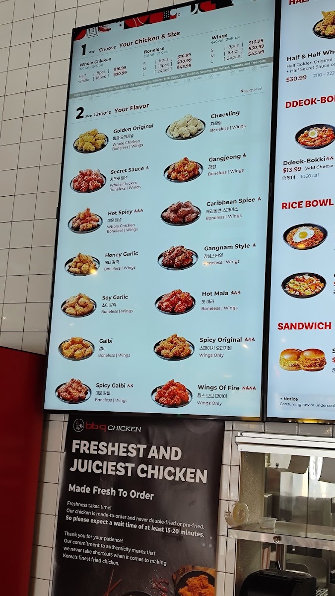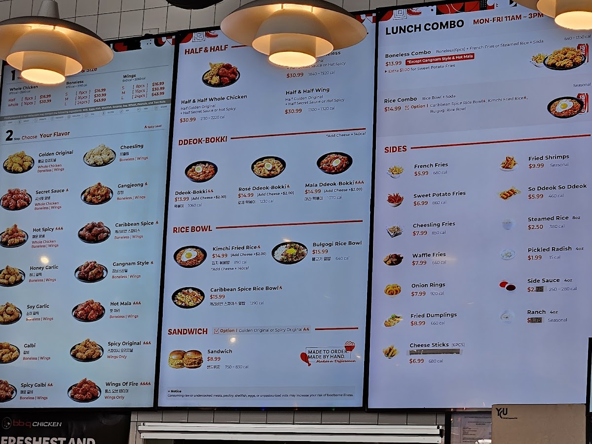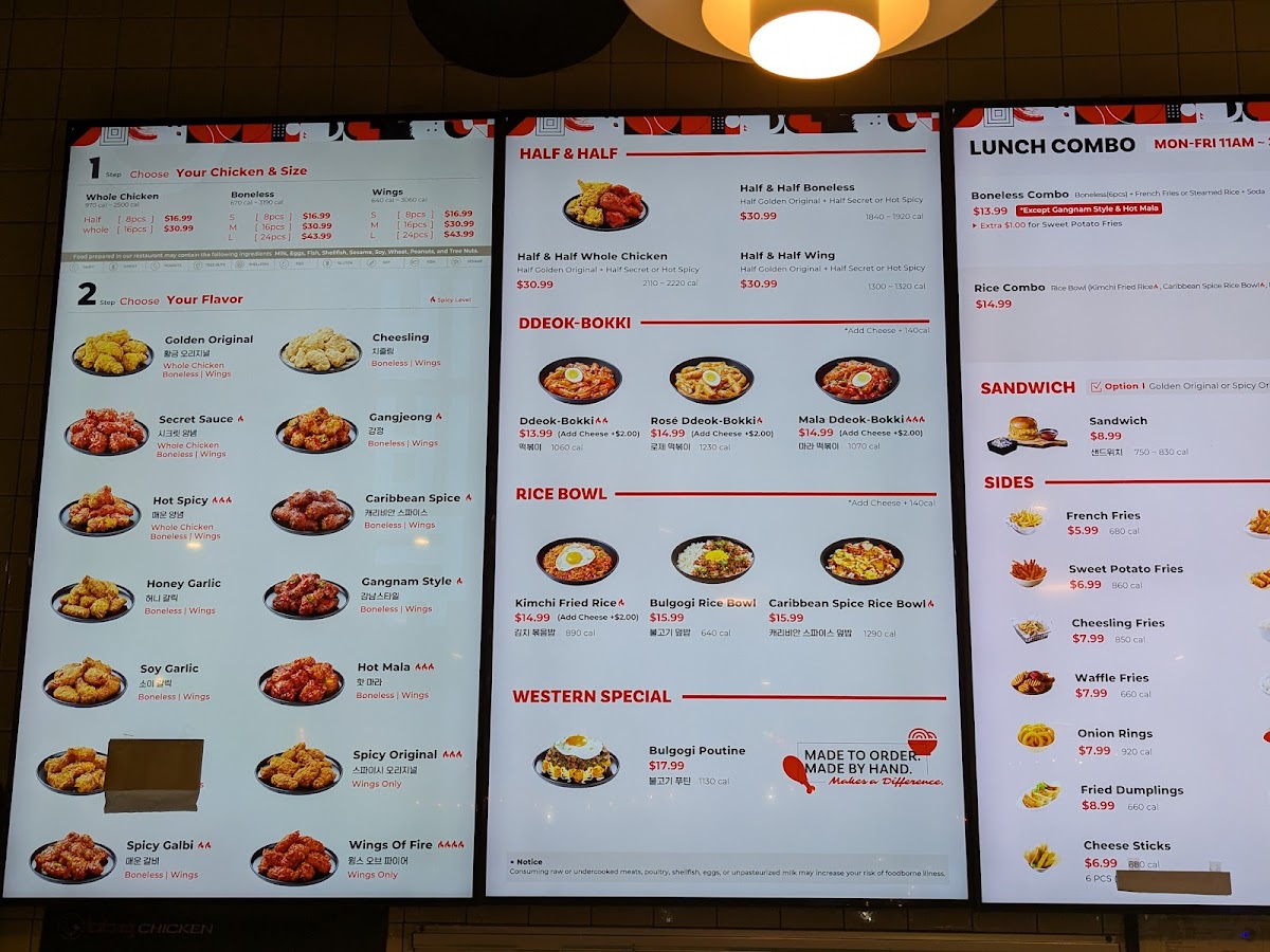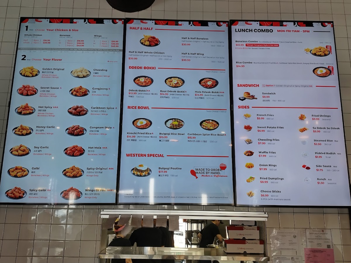 Highlights of the menu include the Mala DdeokBokki, a spicy sensation featuring rice and fish cakes, and the irresistible Crispy Mayo Rice Bowl, combining tender fried chicken with creamy goodness. Customers can’t get enough of the perfectly seasoned Golden Original and Secret Spicy chicken, known for their spectacular crunch and juicy interior.